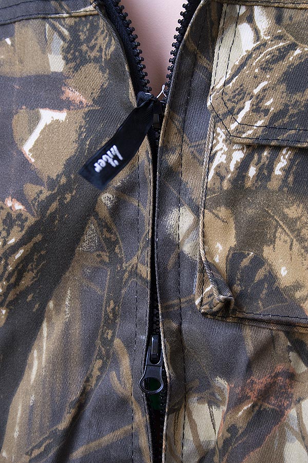 Универсальный костюм для активного отдыха на природе. Длинная свободная куртка на подкладке из сетки регулируется по талии эластичным шнуром. Капюшон регулируется по объему и убирается в воротник — стойку. Рукава на резинке регулируются застежкой Velcro. Проветриваемая спина. 7 внешних карманов различной формы и назначения на молнии и застежках Velcro. Специальный карман для ножа на рукаве. Штаны свободного покроя с поясом на резинке и шлевками под ремень. 4 внешних кармана. На штанах усилена задняя часть и колени.