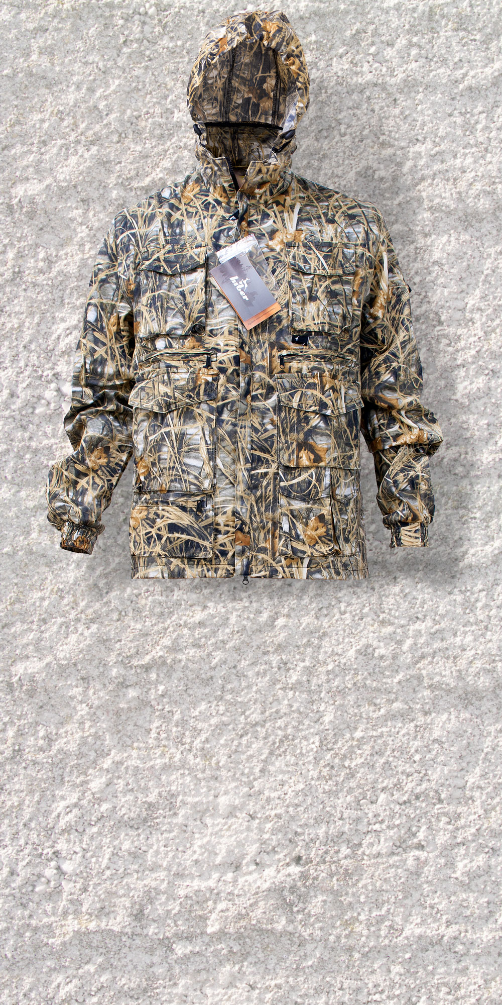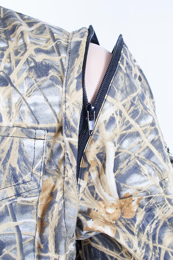 Универсальная куртка-жилет для активного отдыха на природе с отстегивающимися рукавами. Длинная свободная куртка на подкладке из сетки. Центральная молния с ветрозащитной планкой. Воротник — стойка. Капюшон отстегивается и регулируется по объему. Рукава на манжетах. 10 карманов и 1 на спине разных форм и объемов.